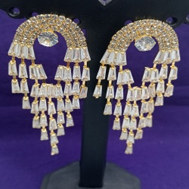 Tags: gold chandelier earrings, crystal party earrings, wedding earrings for women, luxury fashion jewelry, long crystal earrings, statement earrings